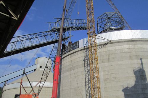日前,水泥工程技术公司承建的广元海螺二期5000t/d熟料生产线工程四条物料输送廊道在一周内全部贯通,标志着土建主体工程竣工。 总长455m的石灰石下山廊道、原料入磨廊道、生料入库廊道和熟料入库廊道能否如期贯通,关系到该工程的总体交安节点。其最大难点属熟料入库廊道斜拉链钢桁架施工,桁架重78吨,顶部支座高42.5m,吊装难度大。为确保工程主体全部顺利交安,水泥工程技术公司副经理韦俊春亲临现场组织,积极与业主沟通,促使工程施工顺利进行,向业主公司交了一份满意的答卷,为实现7月10日点火投产奠定了基础。