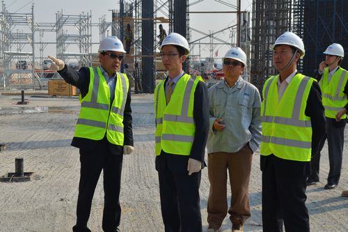 在听取了项目最新进展情况等汇报后,黄杰民大使给予项目高度评价,他说,COEP项目从开工至今,短短数月,克服重重困难,推进速度如此之快,为驻科威特其他中资企业起到表率作用,希望项目部全体员工再接再厉,抓好安全工作的同时努力提高施工质量,在科威特乃至中东地区树起“金字招牌”,为中资企业争光,为祖国争光。
