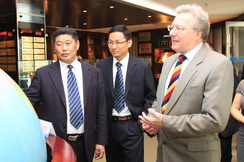 保罗·戴维斯先生和张俊萍女士在喻世功总经理的陪同下参观了公司荣誉展示厅,并观看了公司形象宣传片。