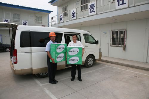 727,公司工会副主席杨绍凤一行受公司领导的委托,来到马钢动车组生产线、高山农民安置房、当涂五星佳苑安置房、开发区银塘组团安置房、乔山安置房等项目部,为基层员工们送上绿豆汤、茶叶、十滴水、人丹、清凉油、藿香正气水等防暑降温用品,送去公司领导对奋战在高温一线的广大员工诚挚的问候和深切的关怀。