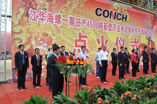1028,由十七冶水泥工程技术公司承建的湖南江华海螺一期日产4500吨新型干法水泥熟料生产线工程顺利竣工投产。江华县委、县政府领导,业主单位代表及参建单位参加了点火投产仪式。