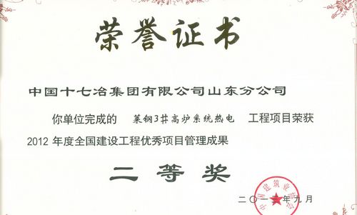 获得表彰的分别是:山东分公司承建的莱钢3#高炉系统热电工程荣获“2012年度全国建设工程项目管理优秀成果二等奖”,城建工程技术公司芜湖海螺大厦工程项目经理部荣获“2012年度全国建设工程项目管理优秀成果三等奖”,城建工程技术公司项目经理丁云霄荣获“2012年度全国建筑业企业优秀项目经理”称号。