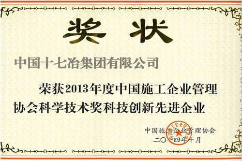 1030,从中国施工企业管理协会获悉,中国十七冶集团荣获2013年度科技创新先进企业称号。