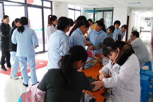7日上午,在马鞍山市福利院,十七冶医院的医务人员为近百名该院女工监测血压、测量血糖,乳腺科医生王沛逐一为大家细致的排查,康复科主任李永亮为每一位检查异常的女工耐心讲解就医及养成良好就医习惯的重要性,医疗服务部负责人与福利院院长沟通为该院“两高”女工开通绿色就诊通道,做进一步治疗。