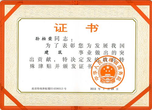 316,中国十七冶集团电气调试高级技师孙柏荣收到由国务院颁发的国务院政府特殊津贴证书,成为2014年度享受国务院政府特殊津贴专家。
