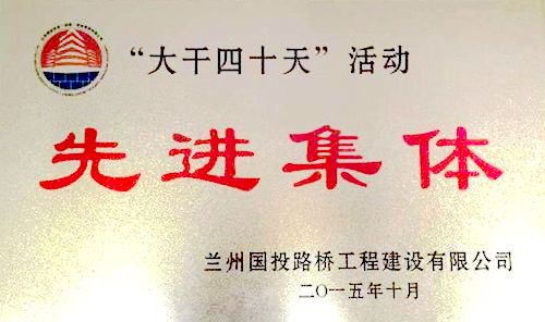 1023,从兰州国投路桥工程建设有限公司传来喜讯,中国十七冶集团路桥工程技术公司兰州市北环路(二期)西线工程四标段项目部在“保安全、促工期、抓质量、抢进度,大干快干四十天”活动中获得西线第一名,被评为“先进集体”,受到业主的表彰和奖励。