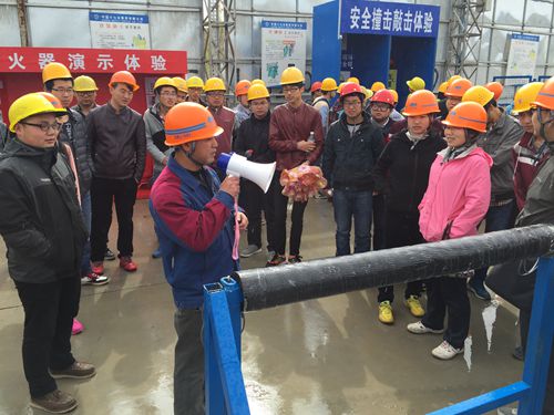 在兰州新区瑞岭国际项目施工现场,醒目的安全质量标语、规范的企业文化外化标识、整齐的项目施工七牌两图、专业操作规范等让同学们详细地了解中国十七冶集团的企业文化核心理念与瑞岭国际项目的基本建设情况。为了让同学们更直观、更全面地了解工程建设管理,项目经理彭国明带领全体观摩师生先后实地参观了项目样板展示区、安全体验区并讲述现场安全文明施工管理、现场施工进度、项目成本管理与安全质量管控的协调发展,并对同学们积极提出的疑问进行了细致、认真的讲解,使同学们对现场施工管理的各个环节有了更加形象和全方位的认识。