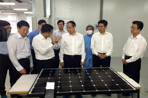 613日,安徽省委书记王学军在马鞍山市考察调研经济社会发展和“两学一做”学习教育进展情况时,来到中国十七冶集团承建的全球最大太阳能电池片厂商——台湾茂迪(马鞍山)新能源项目调研。省委常委、省委秘书长唐承沛,省委常委、组织部长邓向阳等参加。马鞍山市委书记张晓麟、市长魏尧等一同参加了调研。