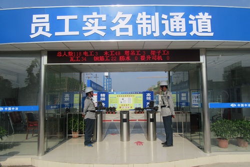 门禁系统落实。项目部实行全封闭管理,门禁设备设置在施工现场员工实名制通道,进出场人员凭门禁考勤卡并佩戴安全帽刷卡进入,所有打卡均在电子屏幕上显示,并由门卫监管,项目部劳资员、质安部、办公室不定期检查,保证员工实名制到位。