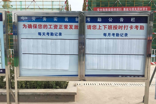 监管平台数据录入落实。项目部推行了“项目劳务用工综合管理系统”,一方面,系统具有信息统计分析和信息上传功能,通过该系统可以对工地的农民工进行实名制登记、考勤和工资管理。另一方面,该系统具有实时监管、预警等功能。