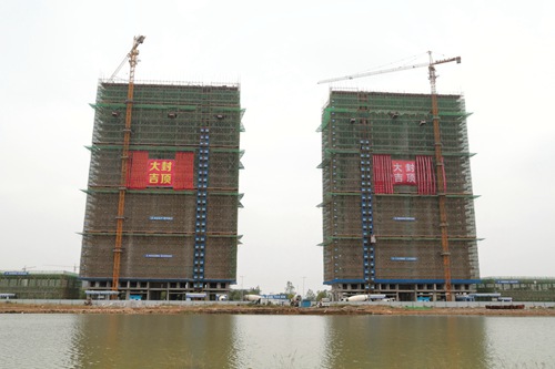 10月17日上午,中冶置业(安徽)公司承建的东誉城项目中央湖景A区两栋29层公寓楼顺利实现主体结构封顶,比计划提前了41天。