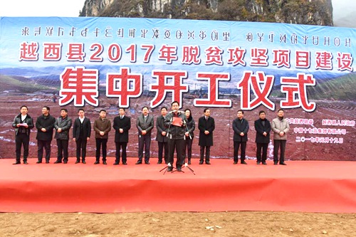 119日上午,由中国十七冶集团承建的越西县2017年脱贫攻坚项目开工。凉山州委组织部副部长、州委老干局局长杨国敏,越西县委书记袁洪、县长肖正权、县人大常委会主任吉差阿木、县政协主席谢宇光,中国十七冶集团成都分公司经理余志忠出席了开工仪式。