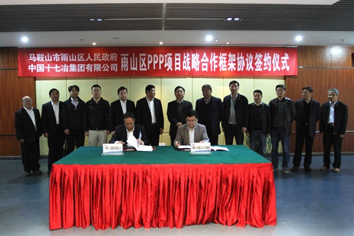 4月6日下午,中国十七冶集团与马鞍山市雨山区人民政府签订PPP项目战略合作框架协议。中国十七冶集团董事长、党委书记喻世功、雨山区委书记徐泽能出席并见证签约仪式;中国十七冶集团总经理、党委副书记刘安义、雨山区委副书记、区长陈永红分别致辞;中国十七冶集团副总经理王振堂、雨山区委常委、常务副区长沙德宏代表双方签署协议。签约仪式由中国十七冶集团副总会计师李文主持。