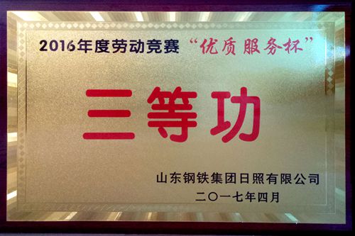 510,中国十七冶集团冶金工程技术公司承建的山钢日照精品基地炼钢主车间和高炉公辅两项目分别获得山东钢铁集团日照有限公司2016年度劳动竞赛“高效工程杯”二等功和“优质服务杯”三等功。