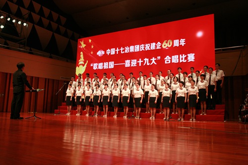 峥嵘岁月一甲子,艰苦创业展辉煌。9月8日下午,中国十七冶集团有限公司隆重举行建企60周年“歌唱祖国——喜迎十九大”合唱比赛。中国十七冶集团董事长、党委书记喻世功,总经理、党委副书记刘安义,纪委书记、副总经理蔡进,副总经理曹永忠、伍昌国,总会计师李文,以及总部机关各部门主管级以上管理人员、各二级公司领导班子及主管级以上人员、在马鞍山市周边项目的中层以上管理人员共计300余人在现场观看了比赛。来自总部机关和各二级公司的11支代表队参加了比赛。