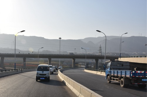 该工程设计起点雁滩S610#道路,东接东岗立交T605#道路主线桥梁,线路全长1868m,建设标准为城市I级主干道,路幅宽25m,设计车速60km/h。项目的建成,极大地方便雁滩周边居民到南环路通行,同时也为榆中、和平等区域群众来往雁滩提供了便利条件,对提升兰州市东出口交通效率,缓解交通压力,打通东西交通大动脉“肠梗阻”发挥了显著作用。