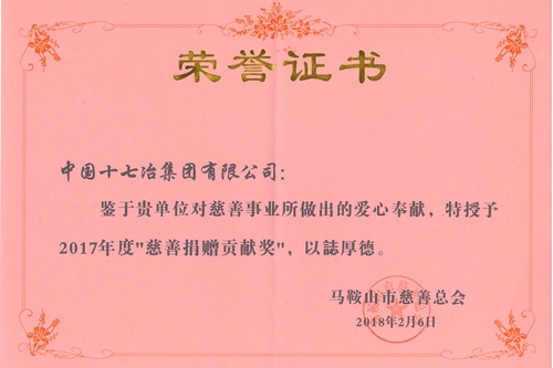 2月6日下午,马鞍山市慈善总会在市人力资源管理服务中心表彰2017年在“小慈大爱”慈善活动中做出突出贡献的企业、团体和个人。中国十七冶集团作为捐资额二十万以上的四家单位之一,获得2017年度“慈善捐赠贡献奖”荣誉称号。