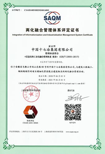十七冶始终坚持战略引领,全员参与,以获取可持续竞争优势为关注焦点,以协同创新为方式,全局统筹、持续革新,力促两化融合目标的实现。公司将以两化融合管理体系再认定为新的起点,通过持续改进两化融合管理体系,建设信息化条件下的智慧工地,打造业务财务一体化和智慧建造新型能力。