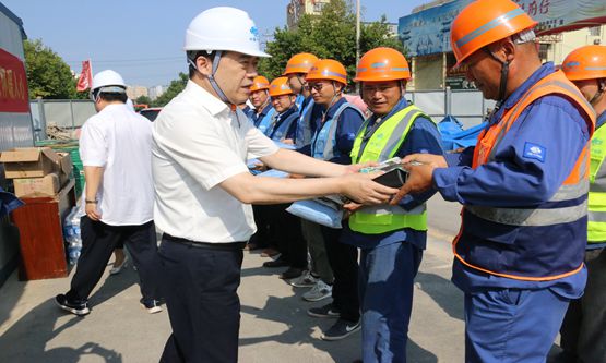集团公司十分关心高温天气在施工现场接受烈日“烤”验的项目一线的员工们。在江西玉山县经开区标准化厂房项目,浦口知识产权服务大厦项目,滁州高教科创城项目和西安柳新路、向东路、渭水二路、人民路等项目,蔡进副总为员工送去了绿豆、白糖、藿香正气丸、矿泉水等防暑降温物品,并要求各项目部,高温季节要千方百计为一线员工提供良好的工作生活环境,合理安排作息时间,做好高温天气的安全生产工作。项目部表示,公司实实在在的关心慰问给大家带来了进一步砥砺奋进的干劲,将切实落实好防暑降温各项措施和安全举措,在确保安全和质量的前提下,为项目按期、顺利交付做出不懈努力。