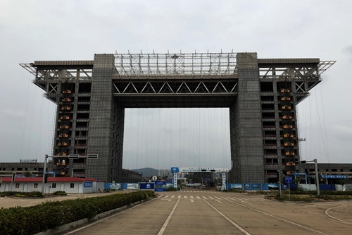 国门楼是口岸联检设施项目主体工程,总建筑面积5万多平方米,集国门、口岸联检、综合办公等多项功能于一身,将成为南方高度最高、长度最长、面积最大,最重要的沿边陆路口岸的国门。该项目是十七冶定的质量“鲁班奖”重点监管项目,项目通过了“全国建筑业绿色建造暨绿色施工示范工程”验收“防城港市建设工程施工安全文明标准化工地”、“中冶集团暨中国中冶安全文明标准化工地”、“广西优质结构工程奖”等多项荣誉。目前,国门项目现处于装饰装修及总图施工阶段,计划在2018年底全面交付使用。