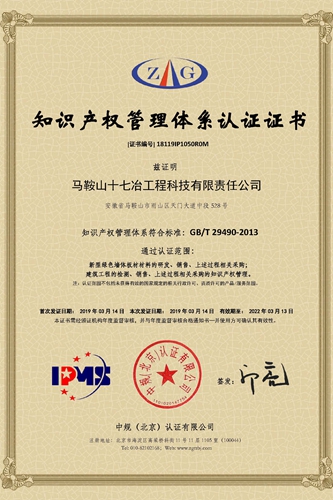 315日,十七冶工程科技公司收到中规(北京)认证有限公司颁发的知识产权管理体系认证证书,顺利通过国家知识产权管理体系认证。