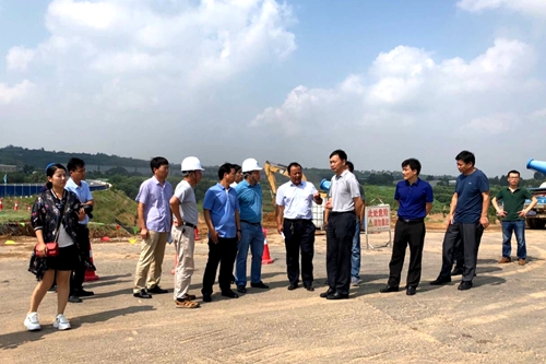 黄玉国书记一行实地查看洛吉快速通道改扩建工程施工现场,认真听取了项目部关于工程进度、安全文明施工、环保及等方面情况汇报,对各项工作表示充分肯定,并指出该项目作为省重点工程,工期目标紧迫,项目部要统筹全局安排、优化施工部署,加快推进施工进度,确保工程按时竣工;各相关单位、部门要各司其职,紧密协作,加快推进项目征迁及杆线迁移工作,为项目建设创造良好的施工环境。