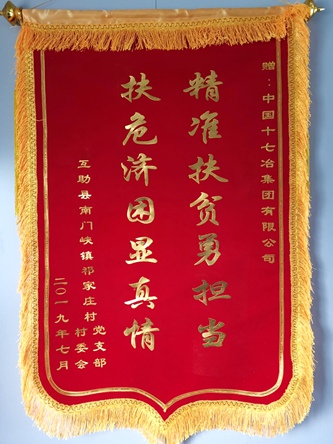 8月22日上午,青海省海东市南门峡镇镇长为中国十七冶集团互助片区项目部送来了印有“精准扶贫勇担当,扶危济困显真情”的锦旗,感谢十七冶互助片区项目部对南门峡镇祁家庄村精准扶贫工作的大力支持。