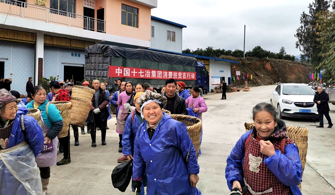 114日上午,春节前,中国十七冶集团工会在总部大楼发放消费扶贫“大礼包”,将产自贵州德江县中国五矿扶贫脐橙产业园的50吨脐橙送至员工手中。随行的德江县蔬种植专业合作社代表对中国十七冶集团给予扶贫工作的大力支持表示衷心感谢,并赠送锦旗。