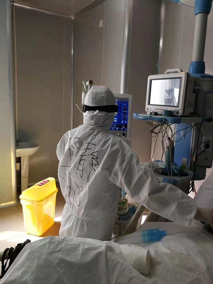 王静在重症监护室照看病人