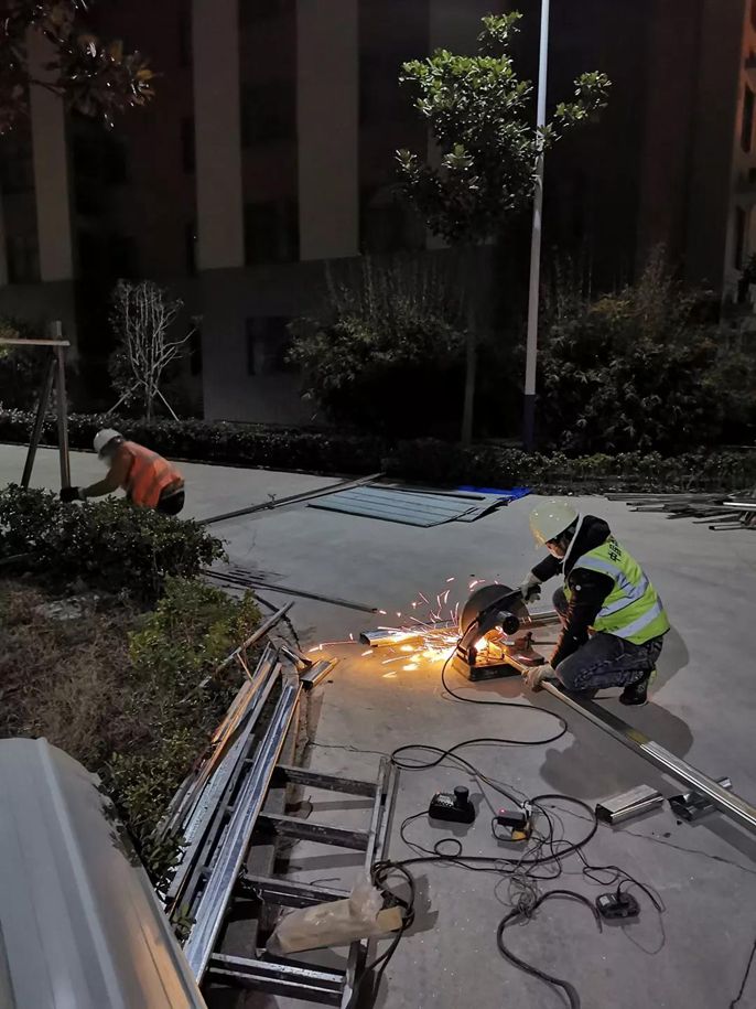 十七冶的医护人员不顾个人安危勇赴前线,而项目一线的员工同样当仁不让。25日晚上,公司在接到马鞍山郑蒲港新区需要建设隔离点的任务后,立即组织郑蒲港项目部组织14名建设者组成应急施工突击队,前往重灾区白桥镇进行集中隔离点建设,确保100多名隔离人员安全隔离。突击队进场后一刻也不耽误,一刻也不懈怠,经过10个小时的连夜作业,完成安装彩钢板围挡120米、电热水器14台、铝合金窗加固110扇、组合床拆装30张、敷设电缆160米及电缆终端头制作12只,确保隔离点顺利投入使用。211日,马鞍山“宁博一体化”项目部对当地20公里内的小区、道路60个点进行围挡封闭,成功封闭集装箱值班室6座,各类围挡100多处,围挡封闭长度共计1500余米。