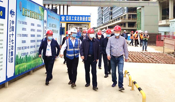 4月7日下午,深汕特别合作区管理委员会副主任文维一行到中国十七冶集团房屋工程技术分公司承建的深圳海逸村(一期)EPC总承包项目检查指导工作。