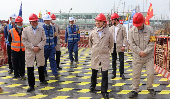 陈德荣董事长一行深入到项目施工现场实地察看,认真听取了项目负责人对现场安全文明施工、防疫防控、工程进度、质量等情况的汇报,对现场的工作情况给予了充分肯定,并指出,本项目作为宝钢德盛不锈钢有限公司新建二炼钢工程的重要组成部分,施工任务十分繁重,希望项目部在确保安全文明施工的前提下,加快推进施工进度,继续保持优良的工作状态,共克时艰,再接再励,争取早日完成建设任务。