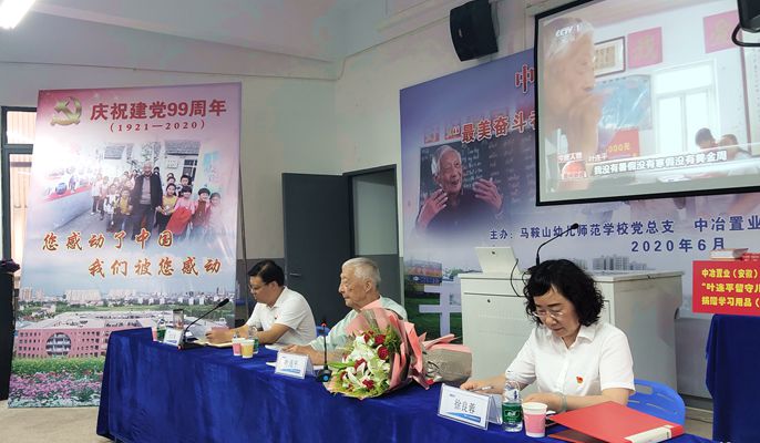 为庆祝建党99周年,6月22日,中冶置业(安徽)有限责任公司党委与马鞍山幼儿师范学校党总支联合主办“中国好人感动中国——最美奋斗者叶连平走进央企工地讲述初心故事”专题党课,特别邀请到“2019年感动中国人物”“全国德育教育先进个人”“中国好人”“省优秀教师”“省优秀共产党员”“省五一劳动奖章”叶连平老人走进中国十七冶集团承建的马鞍山幼儿师范学校工地,讲述老党员初心故事,如何在平凡的教育岗位上做出不平凡的榜样力量。马鞍山幼儿师范学校第一、第二、第三党支部以及退休党支部,中国十七冶集团党委工作部/纪检部党支部,中冶置业(安徽)公司和县片区项目部党支部、郑蒲港片区项目部党支部、机关党支部总计110名党员以及入党积极分子参加活动。