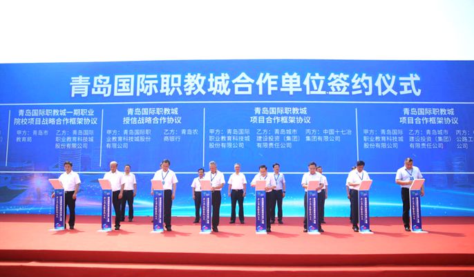 仪式现场,青岛国际职教城教育及实训中心、联合国教科文教育信息化大会永久会址、国际职教城基础设施项目、国际职教城生态环境综合治理工程等四个项目同时启动开工,青岛国际职教城建设全面启动。