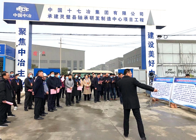 12月2日,宿州市五届人大代表灵璧代表团、灵璧县委书记刘博夫率领的环驰轴承集团有限公司考察团先后到十七冶南京分公司承建的灵璧县轴承研发制造中心项目观摩考察。