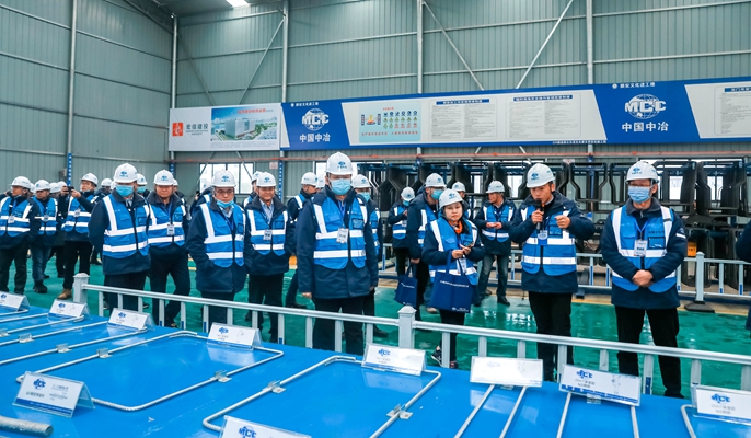 当日上午,观摩团实地观摩考察了项目路基、梁场、隧道施工现场,听取了项目负责人关于项目概况、过程控制、智慧工地、科技创新等方面的讲解,参观了智慧工地建设、VR实景体验等新兴科技,观看了智能弯箍机、数控弯曲中心、智能养护系统等先进工艺的应用,并现场答疑解惑,深入讨论交换意见和建议。标准化、精细化、规范化的施工现场,众多先进的设备和工艺以及热火朝天的大干氛围,给观摩团成员留下了深刻印象,赢得了大家的一致好评。