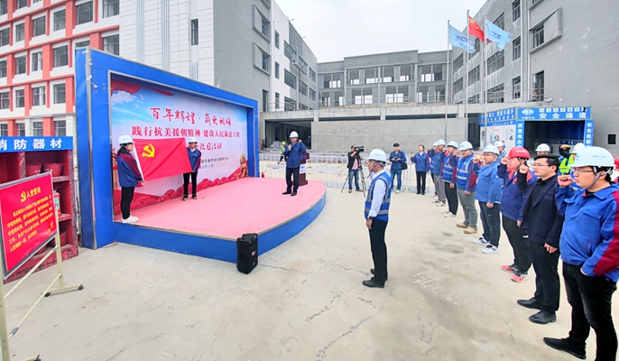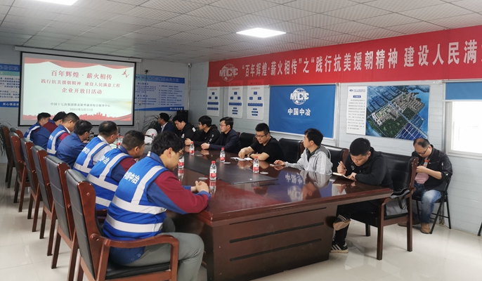 抗美援朝精神是马克思列宁主义、毛泽东思想同正义战争伟大实践相结合的产物,是人民军队宗旨、本色和作风的体现,是中华民族不畏强暴、敢于斗争的历史传统的弘扬,是中国人民极其宝贵的精神财富。5月11日,中国十七冶集团按照中冶集团党委宣传部统一部署,在淮北银华康养综合服务中心项目组织开展“百年辉煌•薪火相传”之“践行抗美援朝精神,建设人民满意工程”专题企业开放日宣传活动。活动邀请了濉溪建设投资控股集团总工程师陆士军、安徽华东工程建设监理咨询有限公司淮北分公司经理年丰、人民网、央广网、淮北新闻网、淮北日报、中安在线等各主流媒体记者们走进施工现场,全方位展示“美好中冶”品牌形象和十七冶建设人民满意工程的强大实力,共同见证中冶人“学党史、守初心、担使命”的行为自觉与精神热忱。