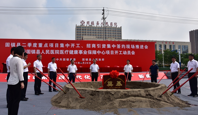 6月28日,安徽固镇县二季度重点项目集中开工、招商引资集中签约现场推进会暨中国十七冶集团固镇县人民医院、中医院、环湖路幼儿园三大民生项目开工。固镇县党政领导班子成员、各相关单位主要负责人、中国十七冶集团副总经理伍昌国、管廊分公司经理任亚强参加了开工仪式。