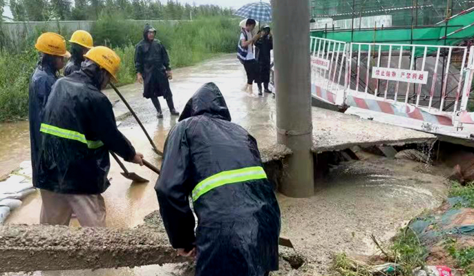 7月18日,郑州持续强降雨,且郑州市政管道无法及时排水,导致中国十七冶郑州片区项目部园区内积水,积水深度达20厘米,且积水一直无法排出。险情出现时,项目部立即安排人员进行抢险救灾,对受灾电缆进行维修抢险,保证正常供电供水,第一时间对现场工人进行疏散安顿。