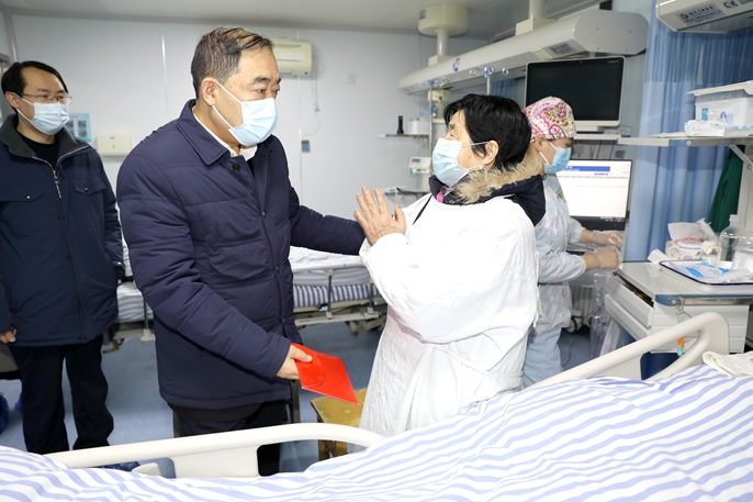 在十七冶医院重症监护室,蔡进副总经理一行看望慰问住院治疗的扶贫干部刘金海,向家属表达了公司和公司党委的亲切问候和诚挚祝福,并送上了新春慰问金。蔡进副总经理详细了解了刘金海同志的病情以及目前治疗进展情况,鼓励家属要坚强面对眼前的困难,照顾好病人和家庭,多保重身体,积极配合医院做好护理和治疗,公司一定会全力帮助解决困难。家属对公司持续的关心关爱,表达了深深的感谢。