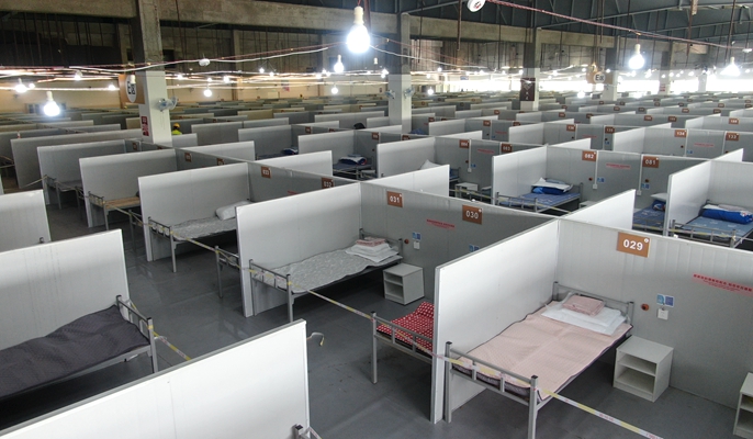 在嘉定凤凰方舱医院,现场进驻人员320名,其中管理人员21名,作业人员299名,投入6台机械设备,夹心板进场11000平方米、地板革14050平方米、热水器20个、水池118个、床3000张、集装箱61个、临时卫生间106个。目前正进行外部隔离围挡收尾、水电管线检查、室外隔离围挡收尾。持续强化现场疫情防控,严格落实每日“一抗原一核酸”检测,全面落实健康消杀。