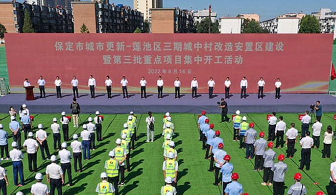 8月16日上午,莲池区三期城中村改造安置区建设和第三批重点项目正式开工。保定市副市长王月衡,市政府党组成员张志奎,莲池区委书记刘晓鹏,区委副书记、区长张超等主要领导及十七冶保定项目公司总经理时华钢出席了开工仪式。