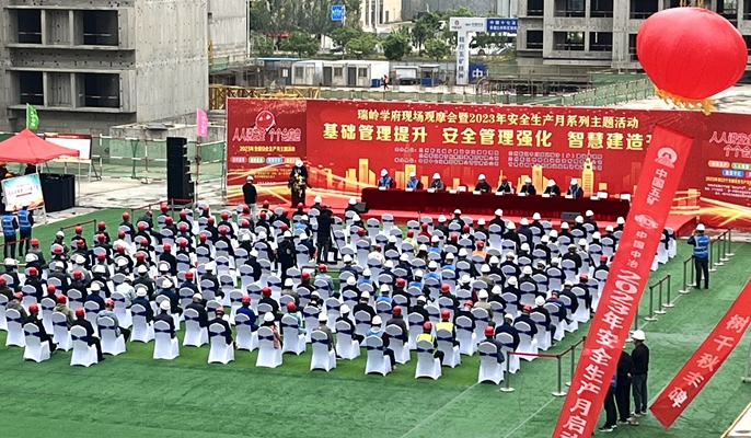 6月2日上午,中国十七冶兰州新区瑞岭学府项目联合兰州新区城乡建设和交通管理局,开展了以“基础管理提升、安全管理强化、智慧建造升级”为主题的观摩交流会活动暨2023年安全生产月系列主题活动。兰州新区城乡建设和交通管理局、中川园区建设管理局负责人,西北公司项目管理部部长操剑飞,甘肃分公司党委书记汪红卫,项目部全体管理人员及作业人员代表200余人参加活动。