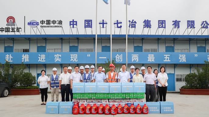 7月17上午,马鞍山市人大常委会党组副书记、副主任,市总工会主席朱来友一行,到中国十七冶安徽工业大学先进技术研究中心项目开展“送清凉”活动,看望慰问高温天气坚守一线的十七冶职工。中国十七冶集团党委副书记刘宇出席活动。