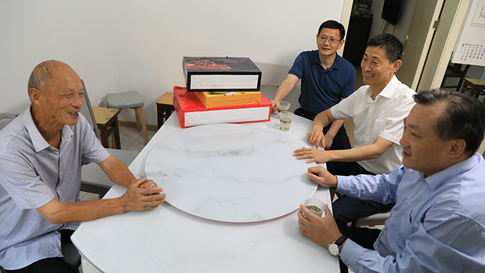 9月25日上午,在国庆佳节来临之际,马鞍山市人大常委会党组副书记、副主任,市总工会主席朱来友一行,来到中国十七冶集团全国劳动模范李旺苗家中,向他及家人送去问候和祝福。公司党委委员、总工程师、副总经理伍昌国参加慰问