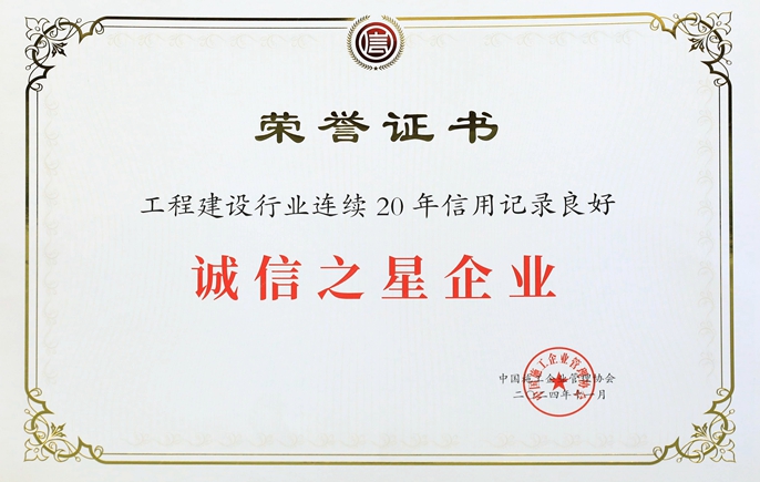 ▲工程建设行业连续20年信用记录良好“诚信之星企业”