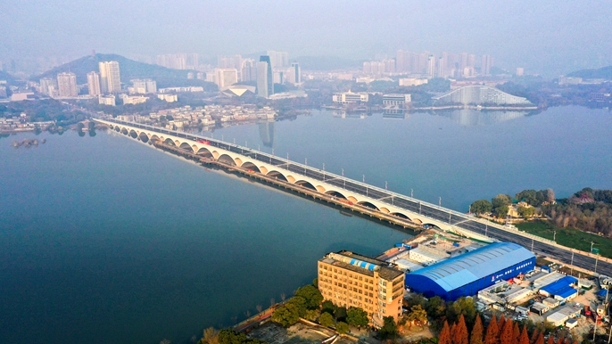 中国十七冶承建的黄石磁湖明月桥项目竣工通车