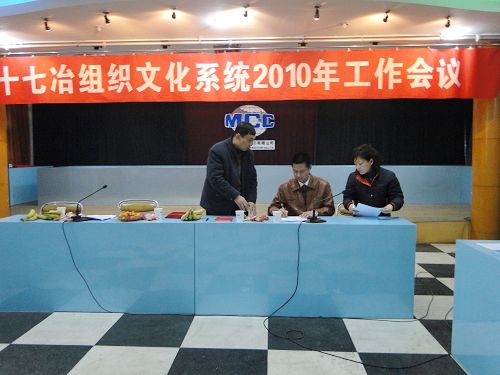 25,十七冶在机电公司会议室召开了2010年组织文化系统工作会议。会议总结了2009年十七冶组织文化系统工作,部署了2010年组织文化系统工作任务。十七冶各二级公司分管领导、组织文化主管部门负责人和通讯员等40余人出席了会议。