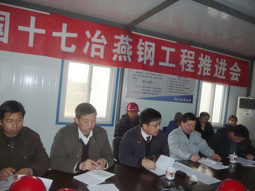 项目经理施光涛就燕钢300m2烧结工程的施工进度和存在的问题进行了汇报,各参战队伍在会上纷纷表态确保节点的顺利完成,为十七冶进驻燕钢集团打好第一场攻坚战。会上,机电公司领导就燕钢工地质量安全检查的结果提出了要求。
