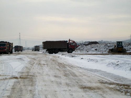 十二月份的营口,已经是冰天雪地,最低温度接近零下20度,路桥工程技术公司营口北海新区项目工地依然车水马龙,一派繁忙景象。